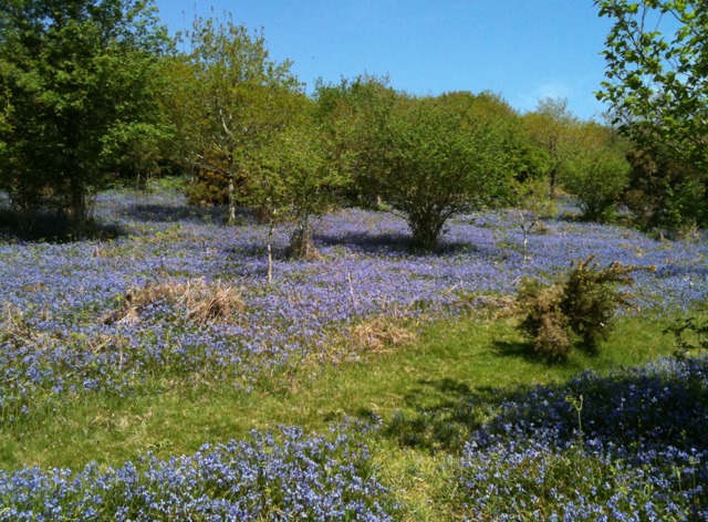First cache of the day, early on a gorgeous spring morning. A lovely walk by the river, through the woods and past acres of bluebells, then up the hill to a glorious view.
