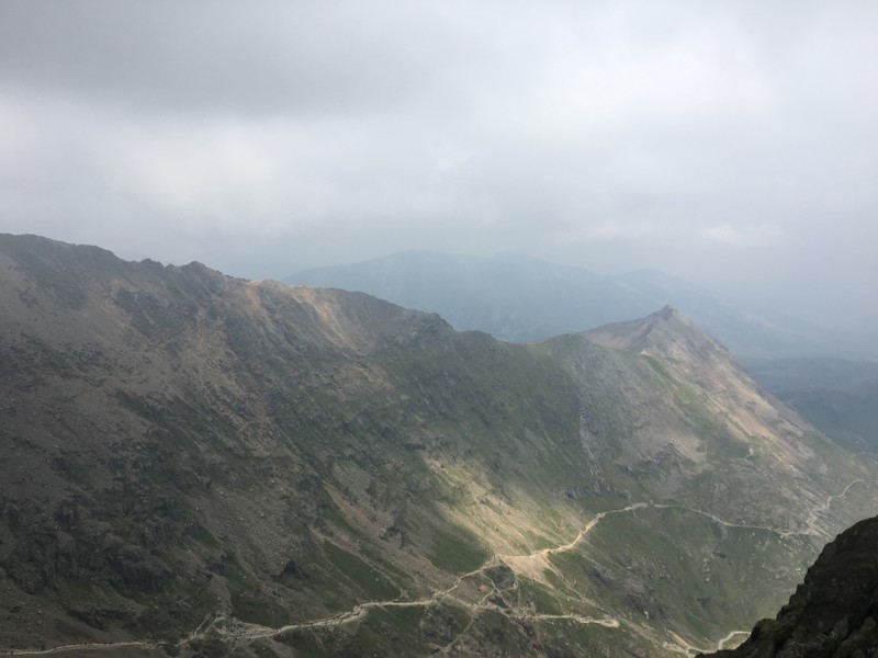A quiet walk along the top of Crib Goch to join the thousands thronging up the Pyg track and the path from Llanberis.