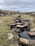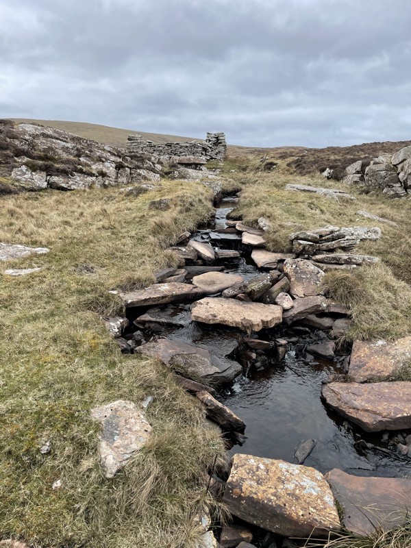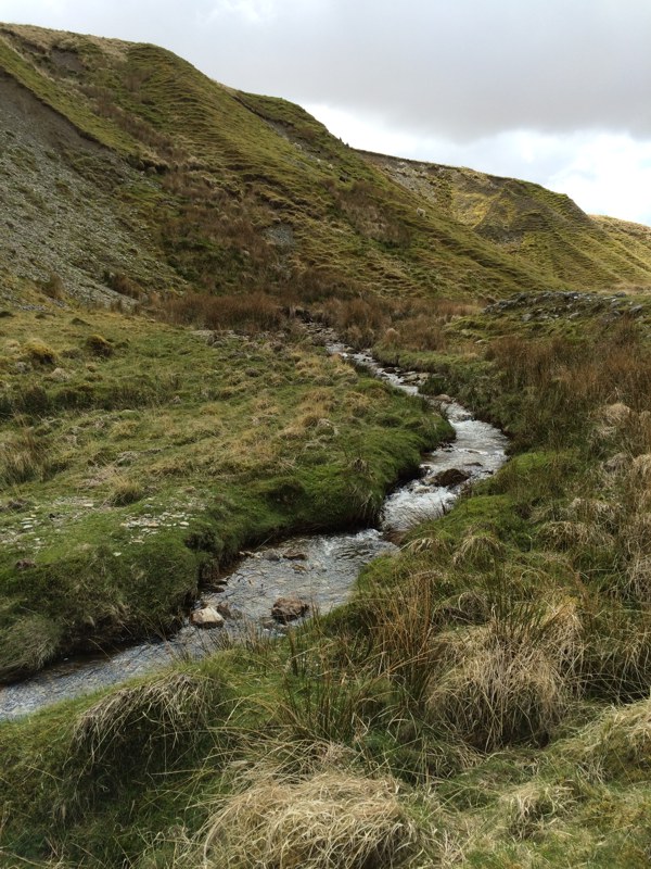 A hard slog over boggy ground and felled trees, a descent through the bracken and a wade in the river 🙂.